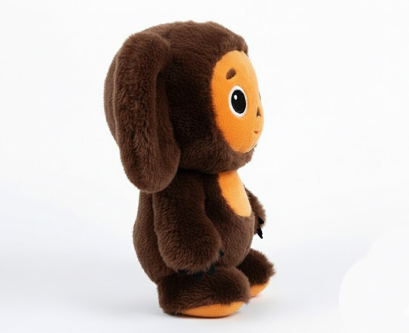 Іграшка виконана з м'якого плюшу та наповнена холофайбером, завдяки чому вона залишається приємною на дотик і тримає форму. Чебурашку можна використовувати як декоративний елемент, подушку або друга для дитини.