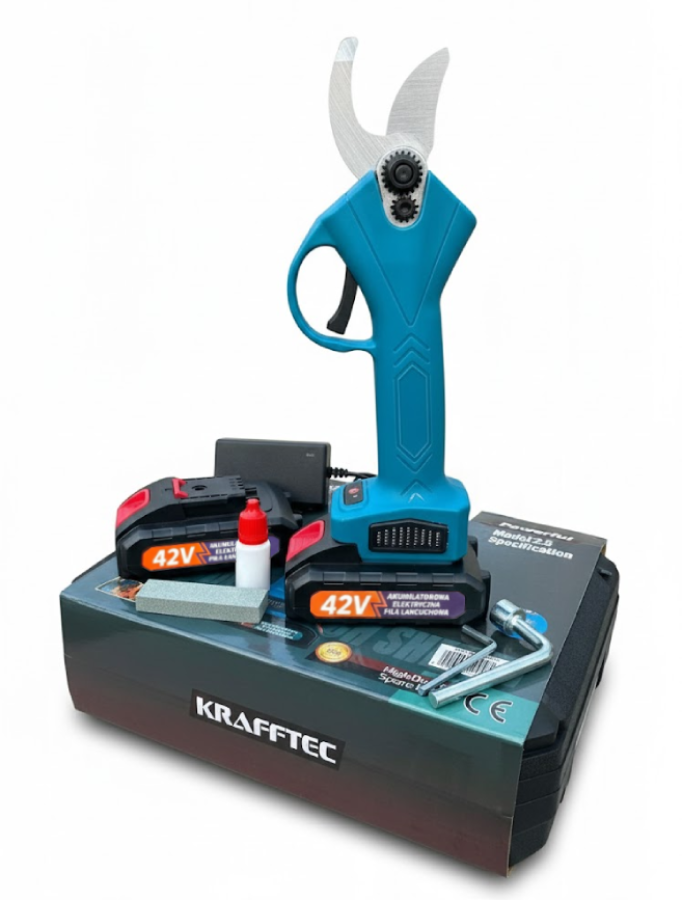 Акумуляторний секатор Krafftec 42V з кейсом і 2 акумуляторами