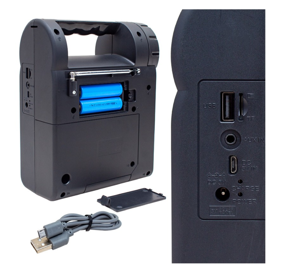 FP-26 об'єднує освітлення та аудіо-функції в одному корпусі: прожектор і додаткове LED-світло, FM-радіо, Bluetooth/AUX та відтворення з USB/microSD — для використання вдома та в дорозі.