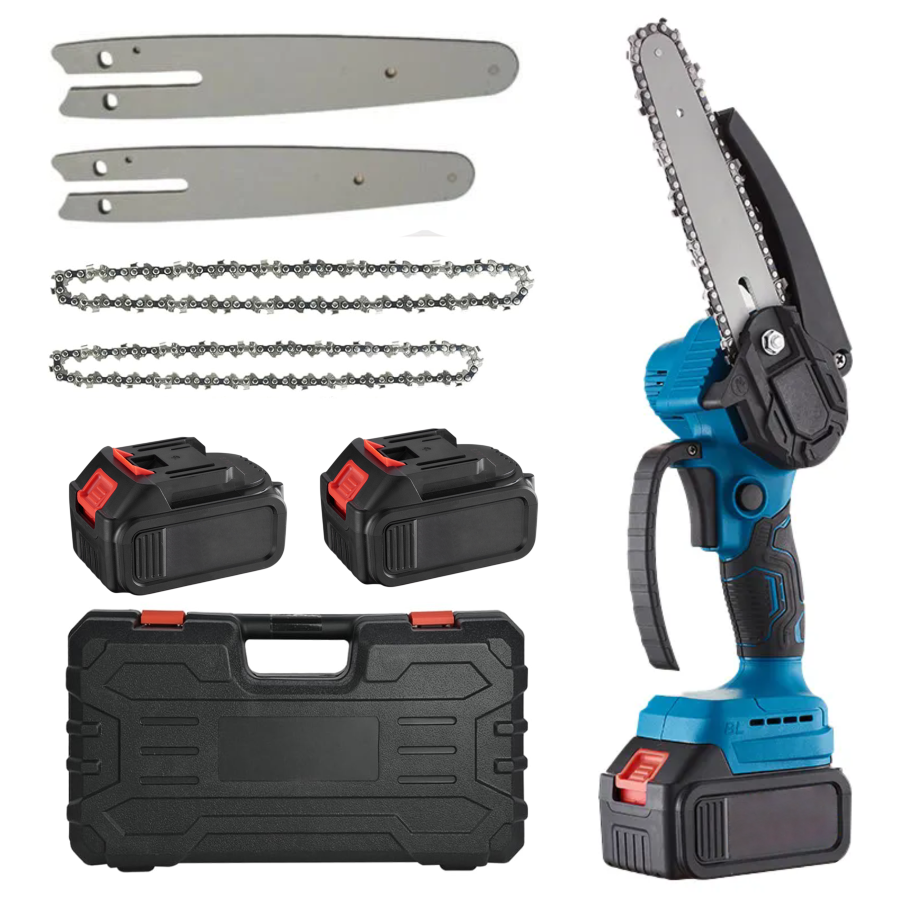 Акумуляторна ланцюгова пила 24V з двома шинами 6 і 8 дюймів 2 АКБ у кейсі